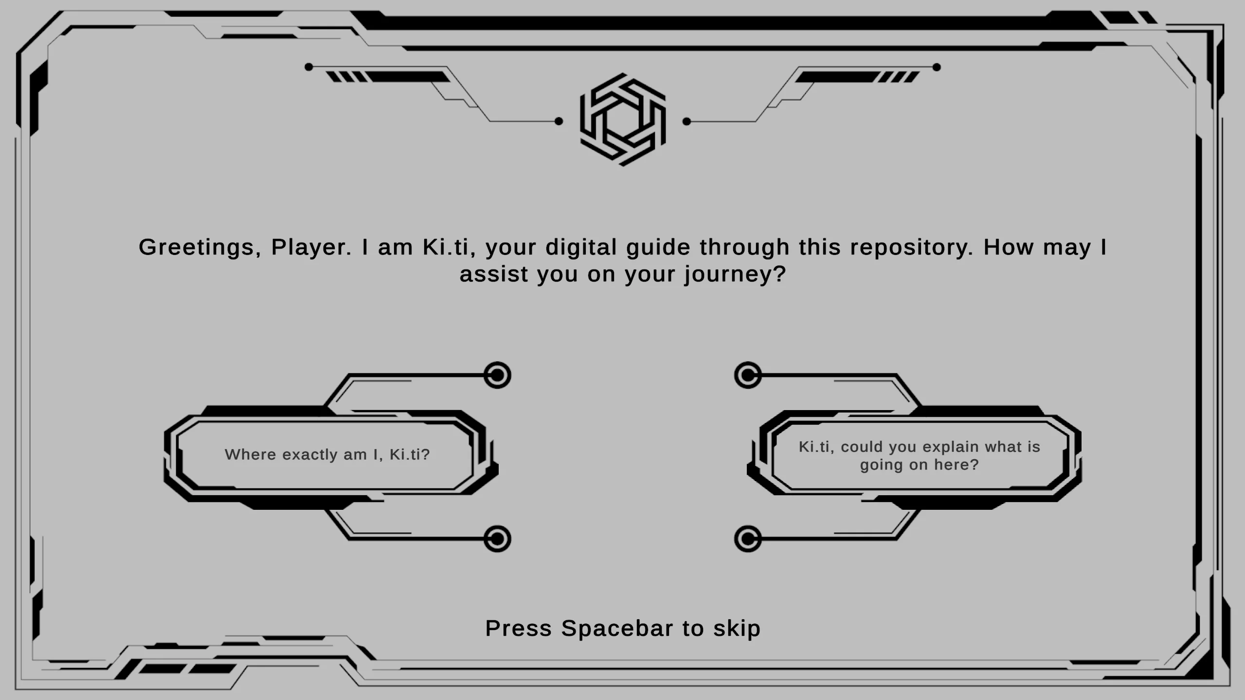 Gitrooms features a minimal sci-fi inspired digital look with neon accents and modular room structures. The clean aesthetic supports focused puzzle-solving and reinforces the game's atmosphere. The in-game AI "ki.ti" serves as your guide and dialogue partner. You can talk to her, ask for hints, or just listen as she comments on your actions. Along the way, you can uncover five hidden diary entries written by ki.ti herself that slowly reveal her backstory and motives. This emotional twist turns Gitrooms into more than just a game about Git, but also about loneliness, connection and the search for meaning in digital communication.